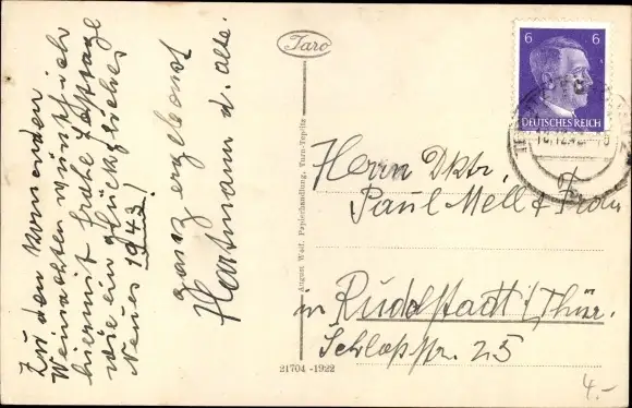 Zustand, siehe Scan, gelaufen, 1942 - ca 14 cm X 9 cm