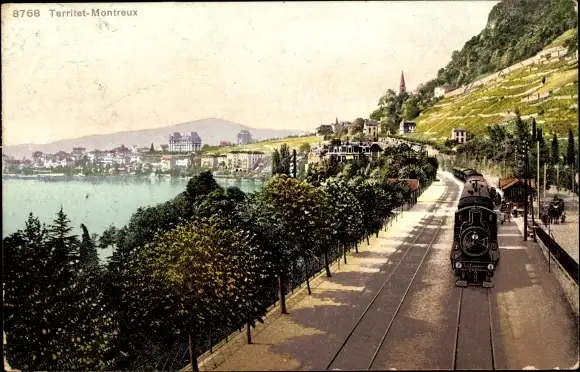 Ak Territet Montreux Kt. Waadt, Panorama, Bahnhof, Eisenbahn