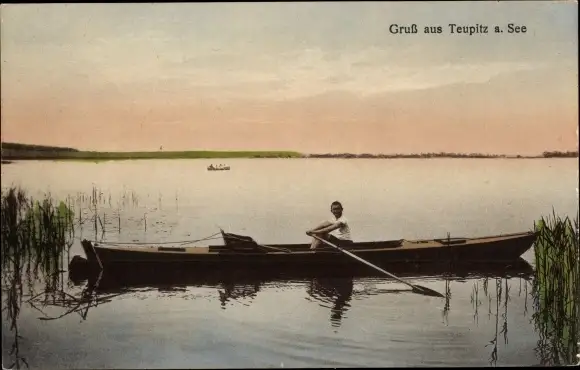 Ak Teupitz in der Mark, Teupitzer See, Ruderboot