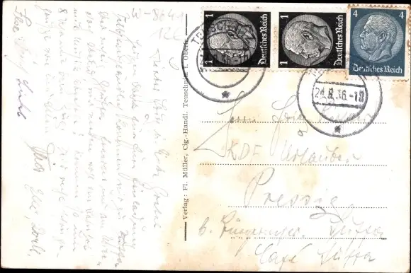 Zustand, siehe Scan, gelaufen, 1936 - ca 14 cm X 9 cm