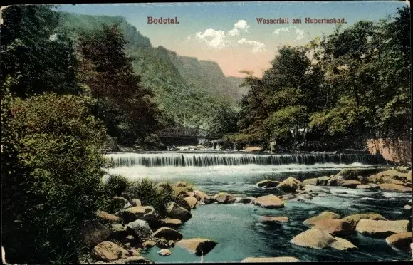Ak Thale im Harz, Bodetal, Wasserfall am Hubertusbad