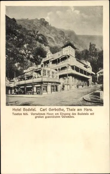 Ak Thale im Harz, Hotel Bodetal, Carl Gerbothe, Eingang Bodetal