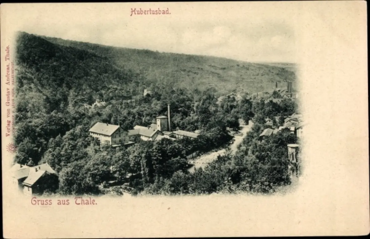 Ak Thale im Harz, Hubertusbad, Vogelperspektive