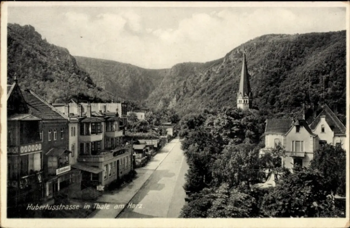 Ak Thale im Harz, Hubertusstraße, malerische Landschaft, Kirche, Häuser
