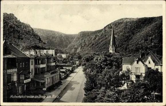 Ak Thale im Harz, Hubertusstraße mit Kirchturm