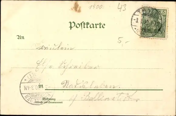 Zustand, siehe Scan, gelaufen, 1900 - ca 14 cm X 9 cm
