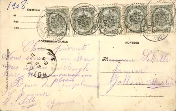 Zustand, siehe Scan, gelaufen, 1908 - ca 14 cm X 9 cm