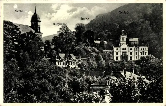 Ak Tharandt im Erzgebirge, Stadtansicht, Kirche, Burgkeller, Schloss, Ruine