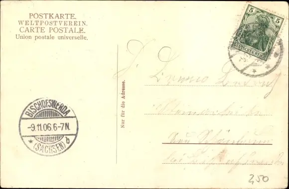 Zustand, siehe Scan, gelaufen, 1906 - ca 14 cm X 9 cm