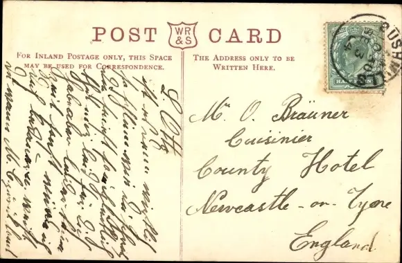 gelaufen 1904, fleckig, sonst guter Zustand