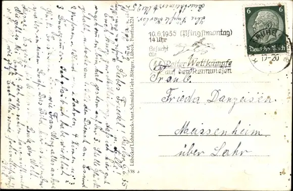 Zustand, siehe Scan, gelaufen, 1935 - ca 14 cm X 9 cm