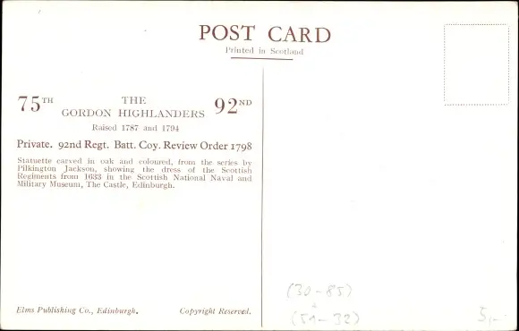 Ak The Gordon Highlanders, Private, 92. Regt. Batt. Schüchtern. Rezension Order 1798, Statuette