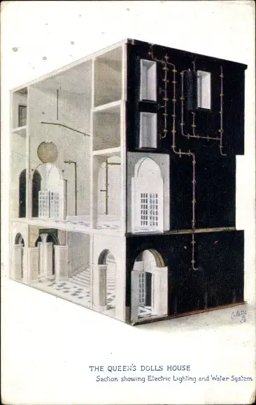 Ak The Queen's Dolls House, section showing electric lighting and water system