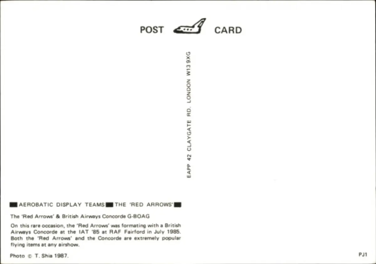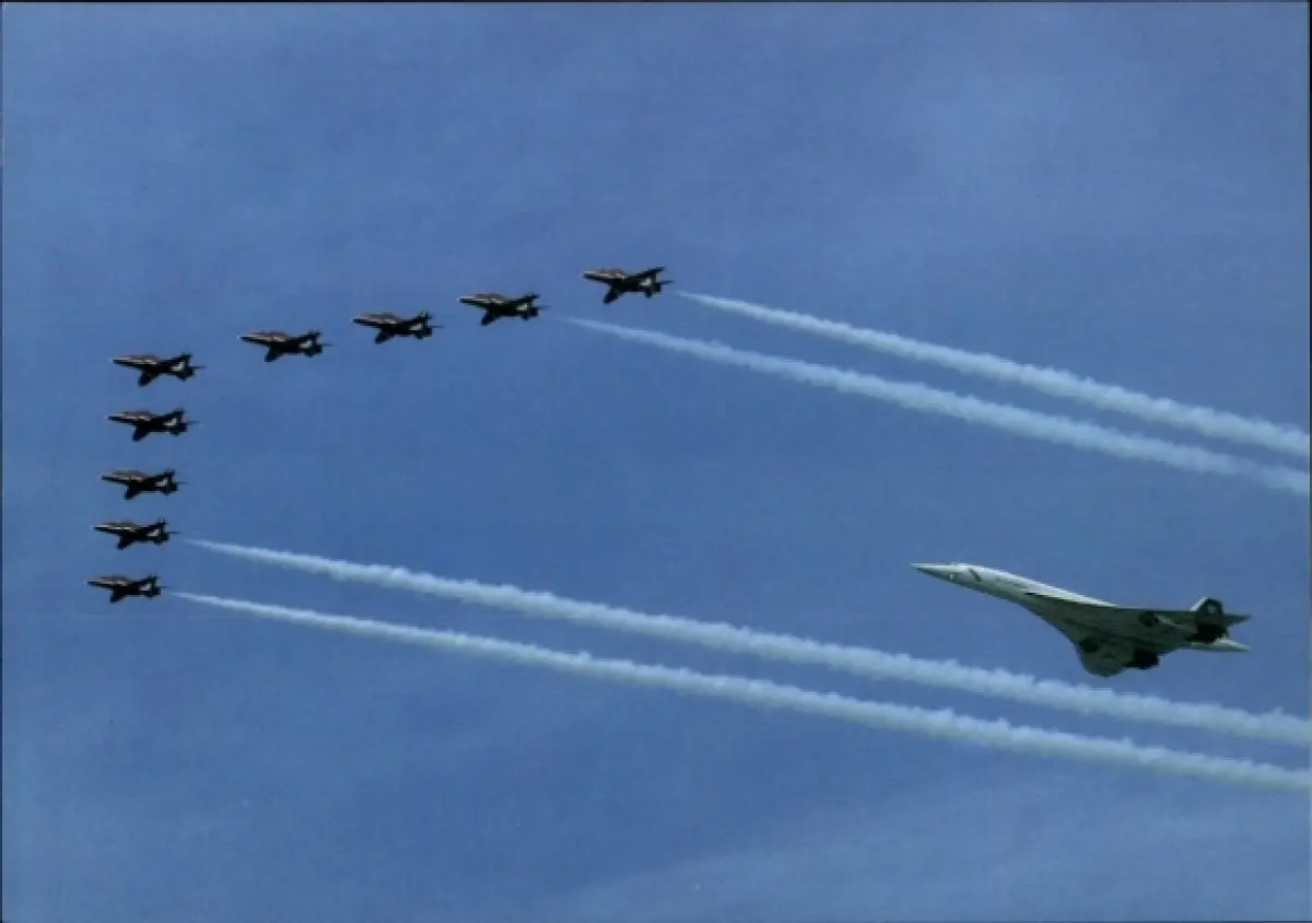 Ak The Red Arrows, Britische Kampfflugzeuge in Formation, British Airways Concorde G-BOAG, IAT 1985