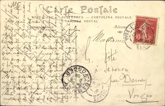 Zustand, siehe Scan, gelaufen, 1908 - ca 14 cm X 9 cm