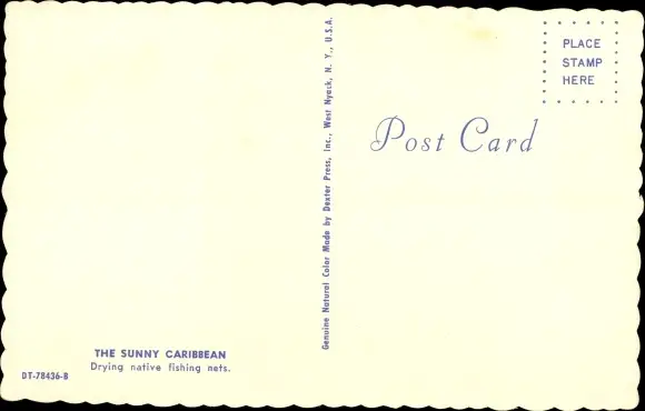 Ak The sunny caribean, Drying native fishing nets, Trocknen der Fischernetze