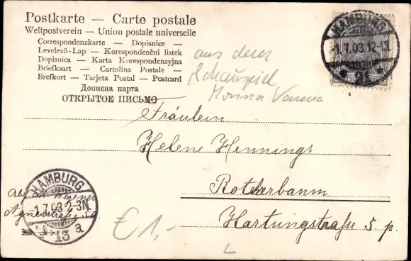 Zustand, siehe Scan, gelaufen, 1903 - ca 14 cm X 9 cm