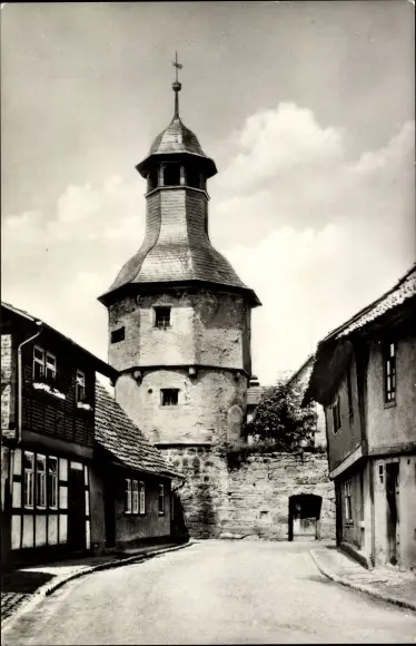 Ak Themar Thüringen, Alter Hexenturm mit Stadtmauer