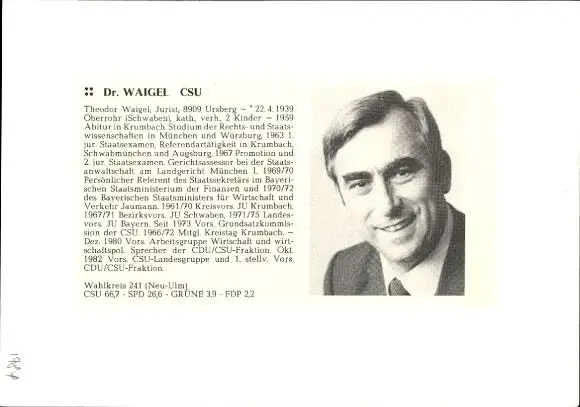 Ak Theo Waigel, Politiker, Portrait, Autogramm
