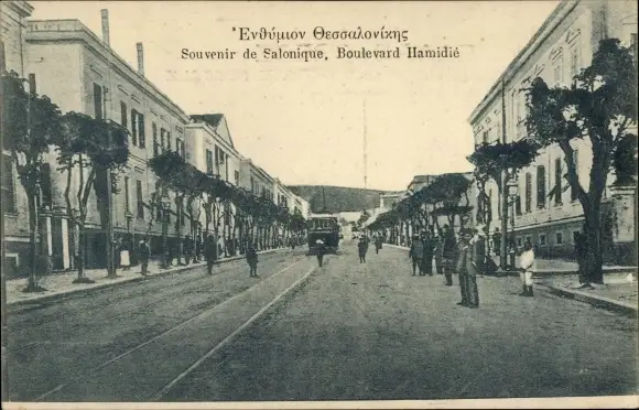 Ak Thessaloniki Griechenland, Boulevard Hamidié, tramway