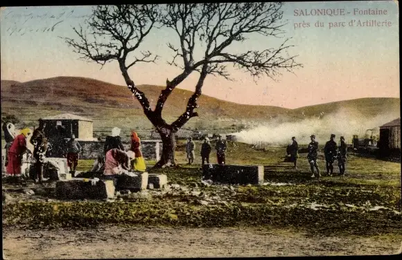 Ak Thessaloniki Griechenland, Fontaine pres du parc d'artillerie