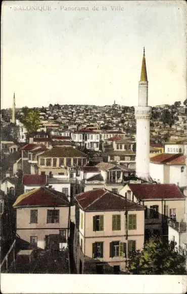 Ak Thessaloniki Griechenland, Panorama, Minarett