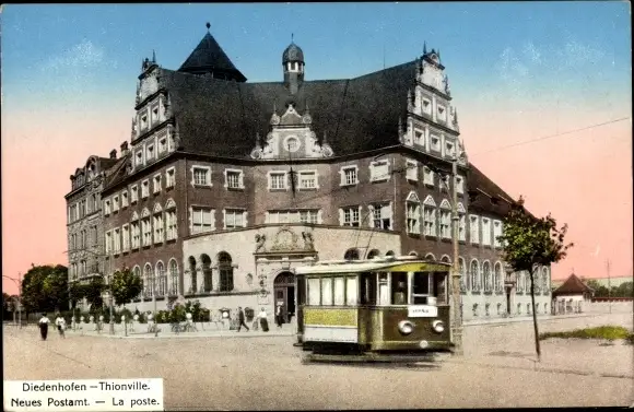 Ak Thionville Diedenhofen Lothringen Moselle, Neues Postamt, Straßenbahn
