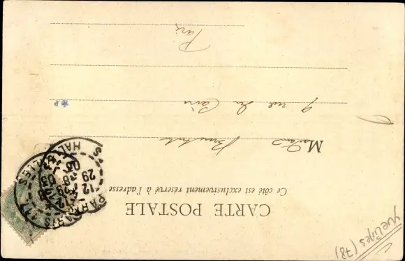 gelaufen 1903, fleckig, Eckknick rechts unten, sonst guter Zustand