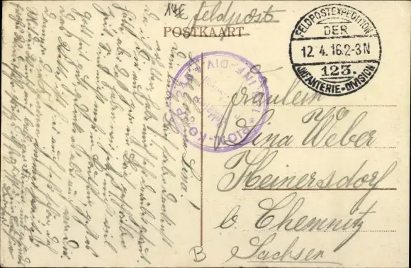 Zustand, siehe Scan, gelaufen, 1916 - ca 13 cm X 9 cm