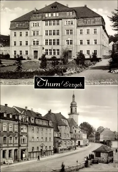 Ak Thum Erzgebirge, Oberschule, Marktstraße, Kirchturm