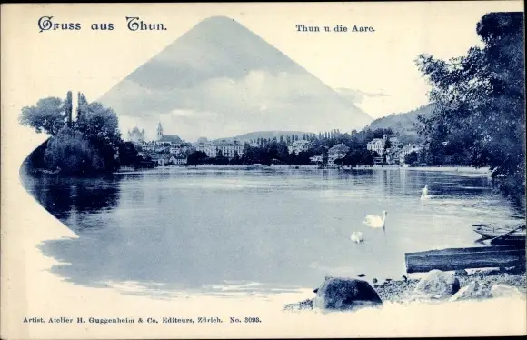 Ak Thun Kanton Bern Schweiz, Blick auf Thun und die Aare