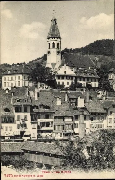 Ak Thun Kanton Bern Schweiz, Kirche, Ort