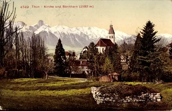 Ak Thun Kanton Bern Schweiz, Kirche, Stockhorn
