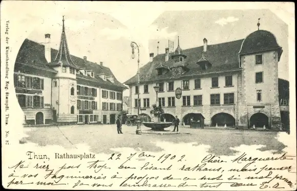 Ak Thun Kanton Bern Schweiz, Rathausplatz