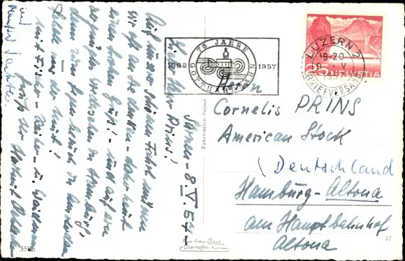 Zustand, siehe Scan, gelaufen, 1957 - ca 14 cm X 9 cm