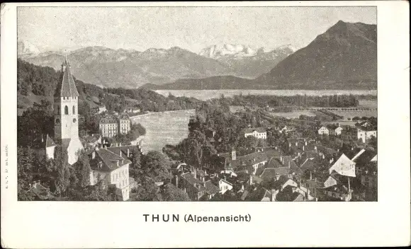 Ak Thun Kanton Bern Schweiz, Stadtansicht, Alpen