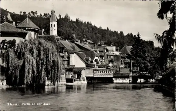 Ak Thun Kanton Bern Schweiz, Thun. Partie an der Aare