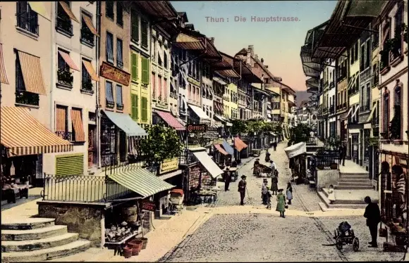 Ak Thun Kt. Bern, Blick in die Hauptsstraße mit Kindern