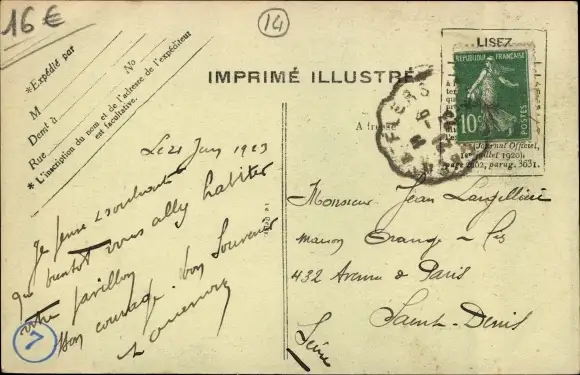 Zustand, siehe Scan, gelaufen, 1923 - ca 14 cm X 9 cm