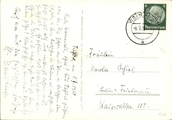 Zustand, siehe Scan, gelaufen, 1938 - ca 15 cm X 10 cm