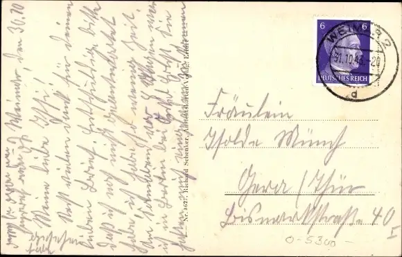 Zustand, siehe Scan, gelaufen, 1943 - ca 14 cm X 9 cm
