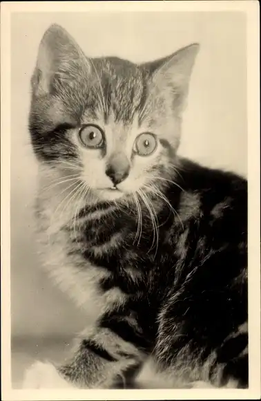 Ak Tierportrait, junge getigerte Katze