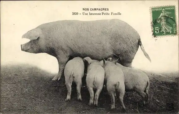 Ak Tierzucht, Schweinemutter mit Ferkeln