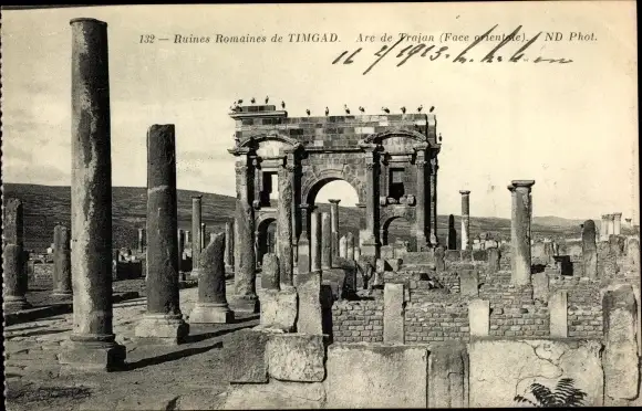 Ak Timgad Algerien, Ruines Romaines, Römische Ruinen, Arc de Trajan, Triumphbogen, Trajansbogen
