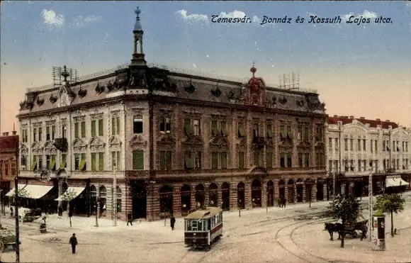 Ak Timișoara Temesvár Temeswar Rumänien, Bonnaz, Kossuth Lajos utca, Straßenbahn