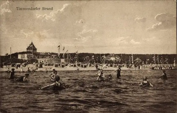 Ak Timmendorfer Strand in Holstein, Strand, Badegäste im Wasser