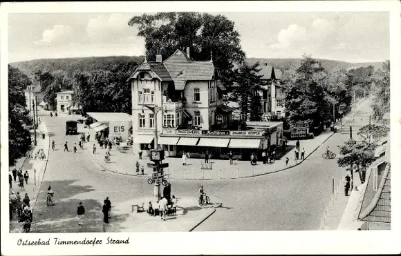 Ak Timmendorfer Strand in Ostholstein, An der Normaluhr, Eisladen, Parfumerie