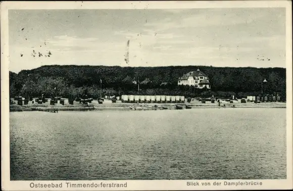 Ak Timmendorfer Strand in Ostholstein, Dampferbrücke, Strandwägen, Boote, Hotel