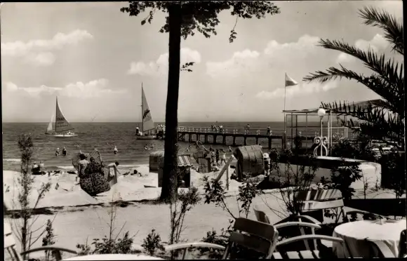 Ak Timmendorfer Strand in Ostholstein, Seebrücke, Strand, Segelboote