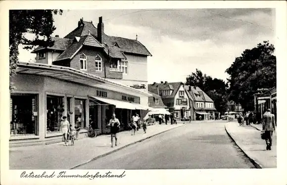 Ak Timmendorfer Strand in Ostholstein, Straßenpartie, Passanten, Geschäft